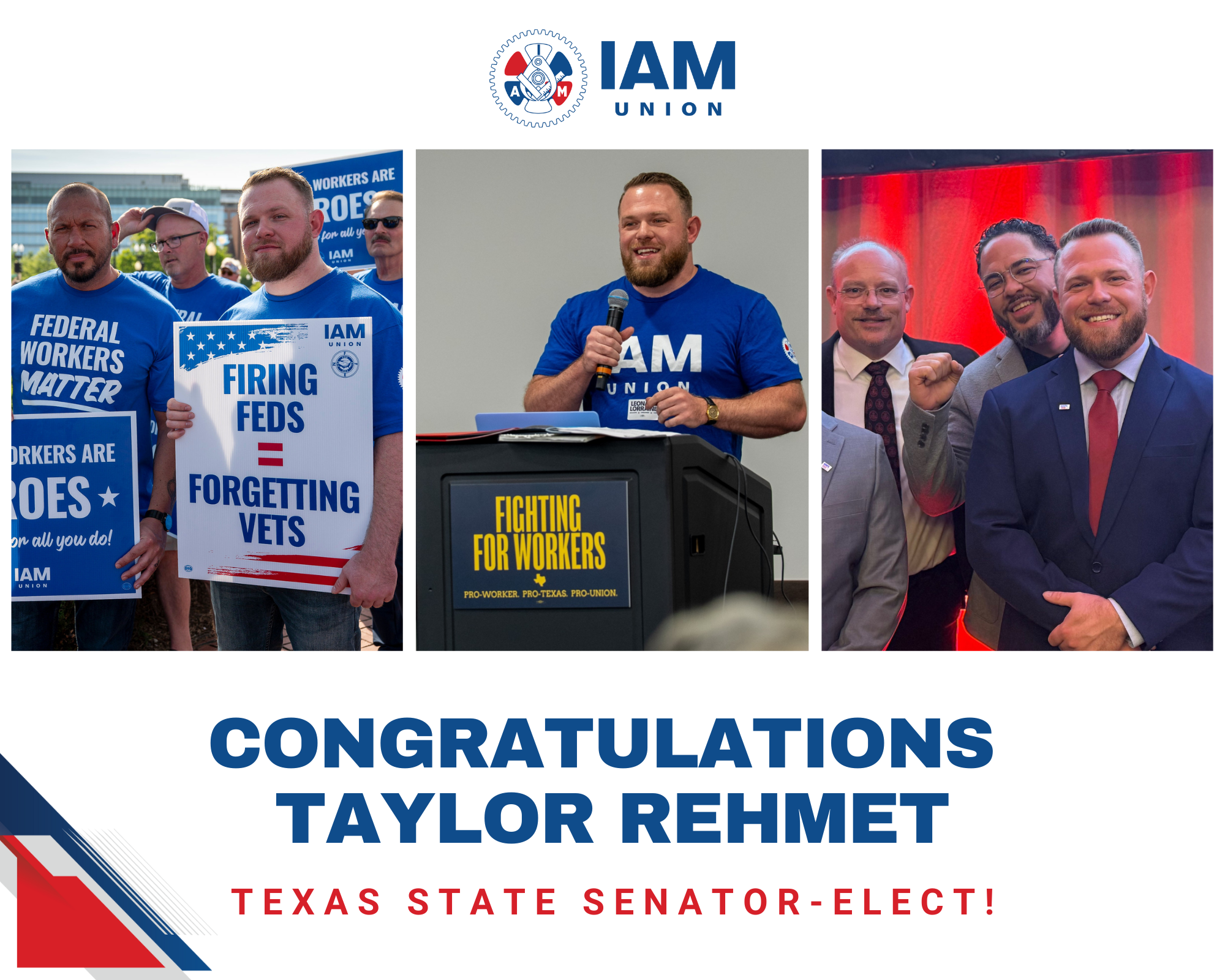 IAM Union Congratulates IAM District 776 The IAM Union proudly congratulates Taylor Rehmet, an IAM District 776 member and labor activist, on his election to represent Texas Senate District 9. Rehmet currently serves as President of IAM Local 776B and President of the Texas IAM Union State Council. A U.S. Air Force veteran, skilled machinist, … Read more